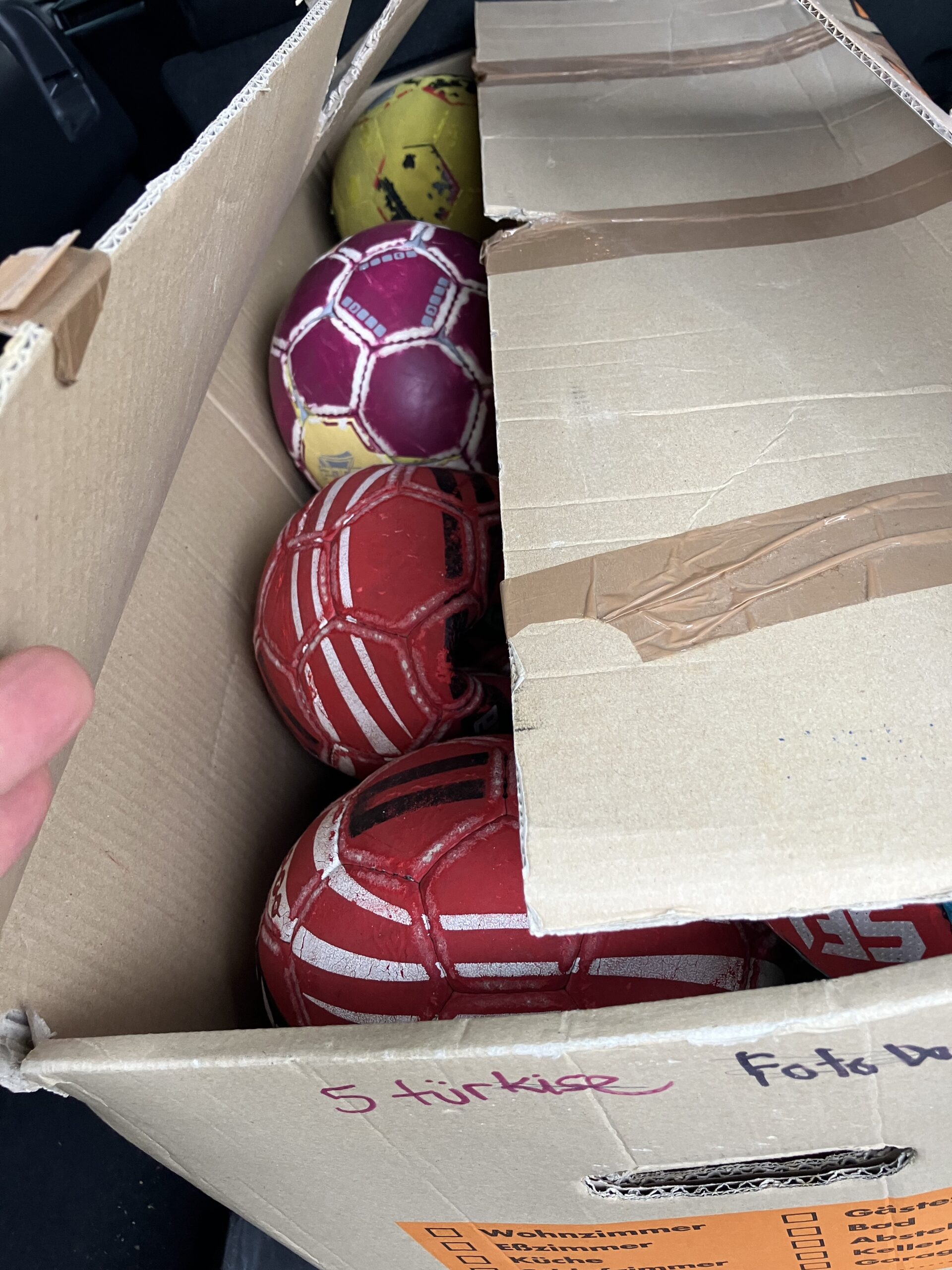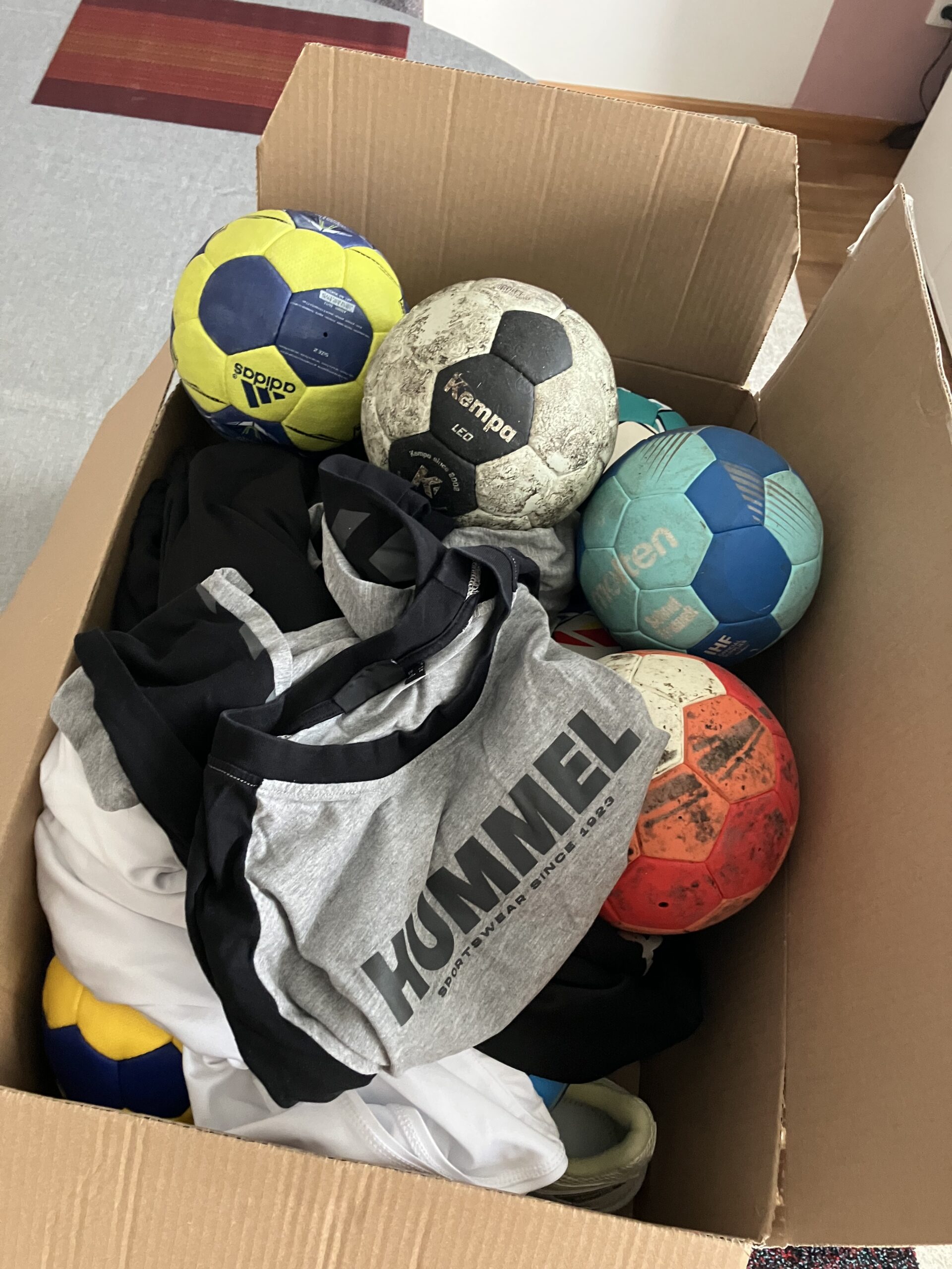 Das war wieder einmal eine typische HandballerInnenaktion. ⚽ Dagmar Müller-Kovacs spendet Bälle, Kleidung und Schuhe, und Beate Hofmann bringt sie direkt bei mir zuhause vorbei. Danke, liebe Handballerinnen!
