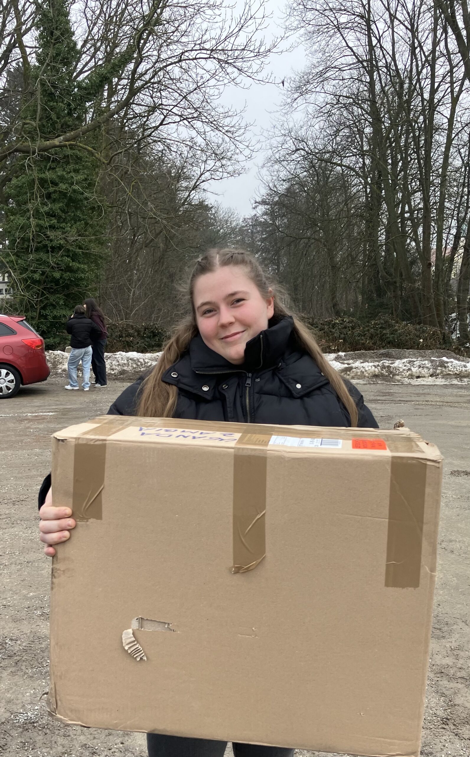 Dort angekommen wird es von mir übernommen, doch weil sofort klar war, dass es fast 20kg Inhalt waren, brauchte ich eine zweite Kiste. Wer hilft? Clemens Döttl und Mario Simlinger, die gerade eine Dressenlieferung für ein anderes Projekt bekommen haben. So kann dank der vielen Spenden gleich nächste Woche eine weitere Kiste versendet werden.